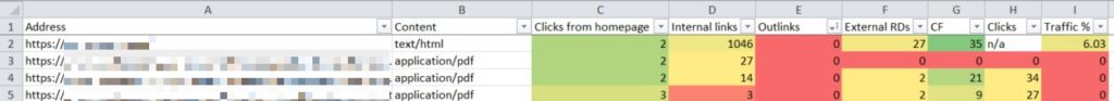For item 3, I recommend Majestic Historic Index Citation Flow for this sort of activity, not least because it can be easily sourced at a URL in bulk via their “Bulk Backlinks” feature. Moz and Ahrefs equivalent metrics are perfectly viable. All of these tools have free versions, but a paid license makes things much easier at scale.